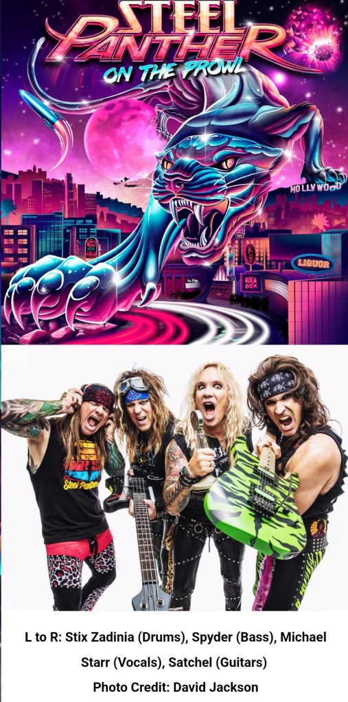 Steel Panther is currently wrapping up a string of Canadian tour dates before returning to the US and then continuing to South American next month. The band has remaining shows in Thunder Bay, Winnipeg, Regina, Calgary, Edmonton, Dawson Creek, Prince George, Penticton in Canada and then returns to the US to play Billings, MT and Boise, ID. The band continues their plan to spread their love around the globe when they hit Chile, Argentina, Brazil, and Mexico in October. Additional Information on all ticket and VIP packages including meet and greets, exclusive merch items, early entry and more for the On The Prowl World Tour 2023 can be found here: https://steelpantherrocks.com/pages/tour.